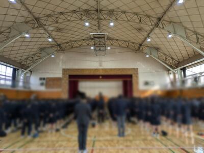 2学期終業式 投稿: 副校長 (11:49) 本日、2学期の終業式を実施しました。 行事や日々の学校生活を通して、生徒たちは多くの経験を重ね、充実した2学期を過ごすことができました。 これもひとえに、保護者の皆様ならびに地域の皆様をはじめとする関係各位の温かいご理解とご協力のおかげです。 本校の教育活動にご支援を賜り、心より感謝申し上げます。 本年も誠にありがとうございました。